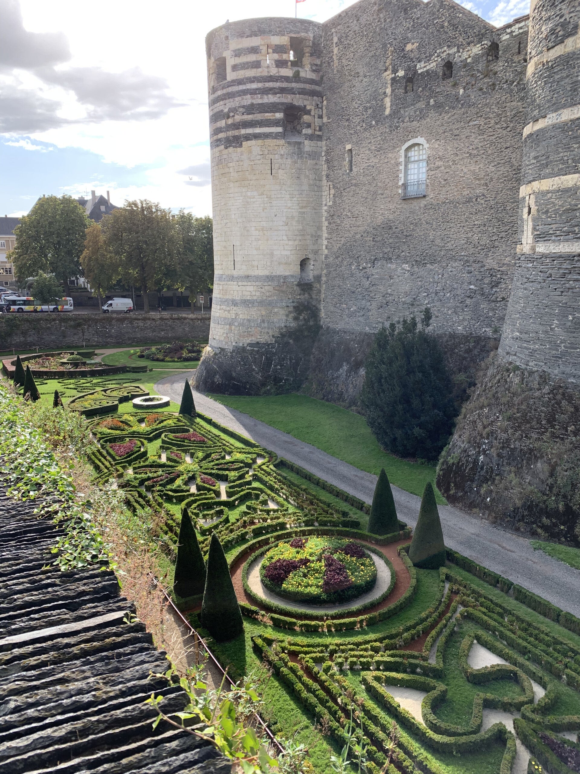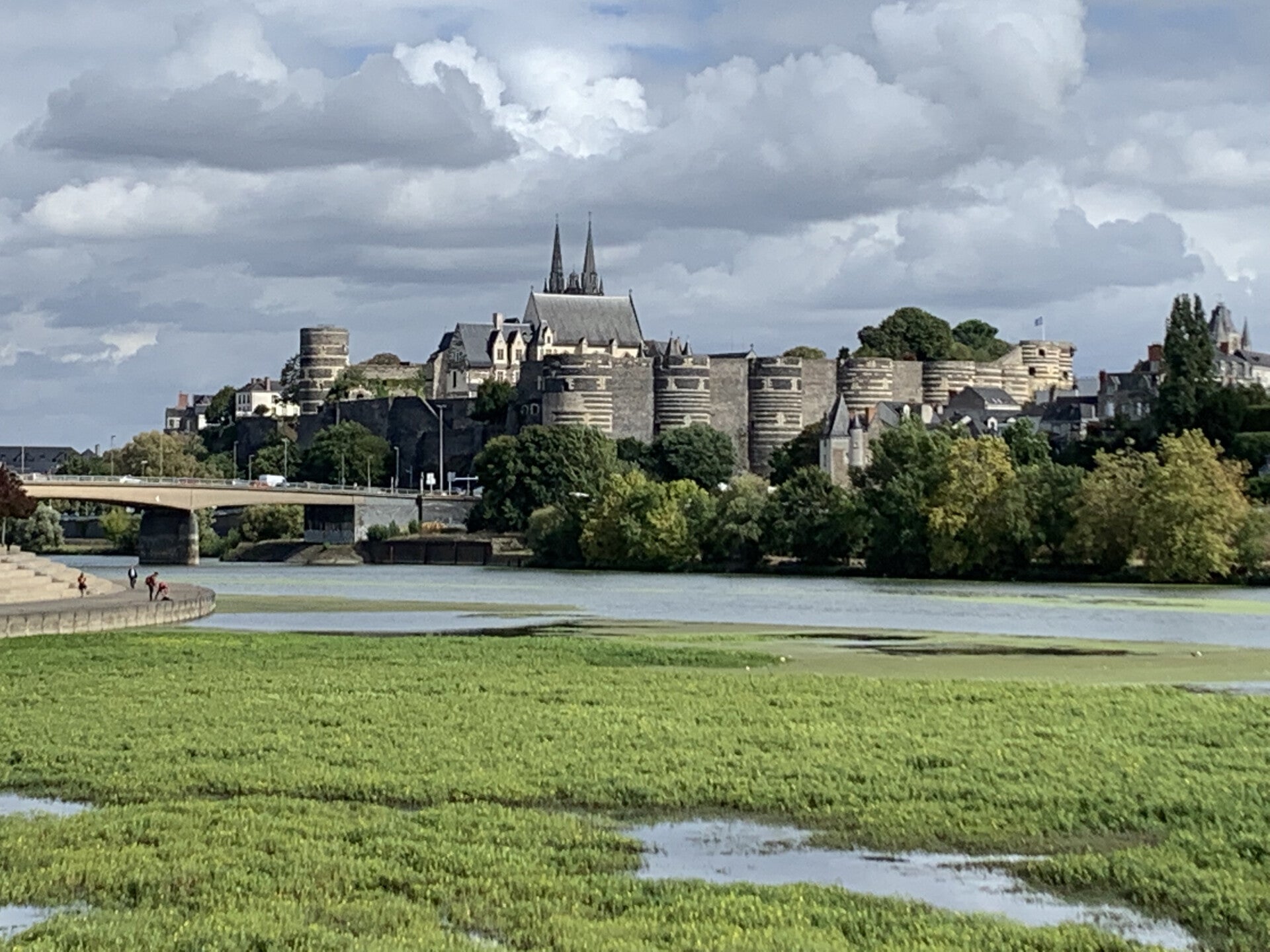 In de loop van de middag fietsen we langs de Maine naar Angers. Die fietstocht is heel prettig (Angers heeft prima fietsvoorzieningen). De stad is vooral erg druk en, in het centrum, erg gezellig. Naast de kathedraal (12e-13e eeuw) en het kasteel (beide worden verbouwd en zijn beperkt toegankelijk) tref je er, verspreid over de stad, enkele middeleeuws stadspaleizen en een paar middeleeuwse vakwerkhuizen. Het merendeel van de originele bebouwing is echter vervangen door die typisch Franse statige gebouwen van het einde van de 19e eeuw. Angers is dus “best wel aardig” maar krijgt geen top-10-notering.