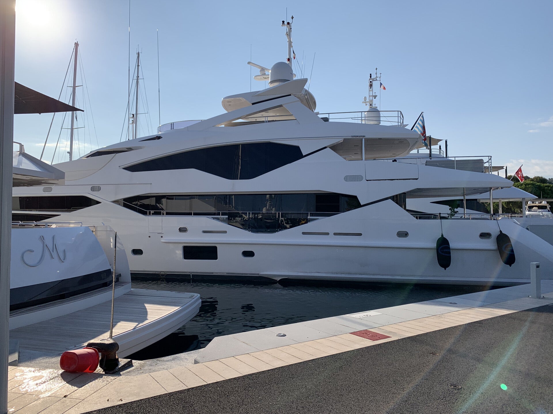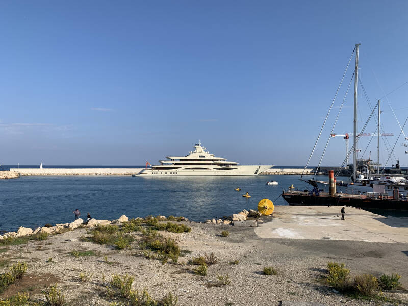 In Antibes krijgen we het antwoord op onze vraag, waar al die grote jachten zijn gebleven die gisteren niet in Saint-Tropez lagen. Welnu, die liggen in de jachthaven van Antibes. Wat een joekels, en niet eentje, maar tientallen.