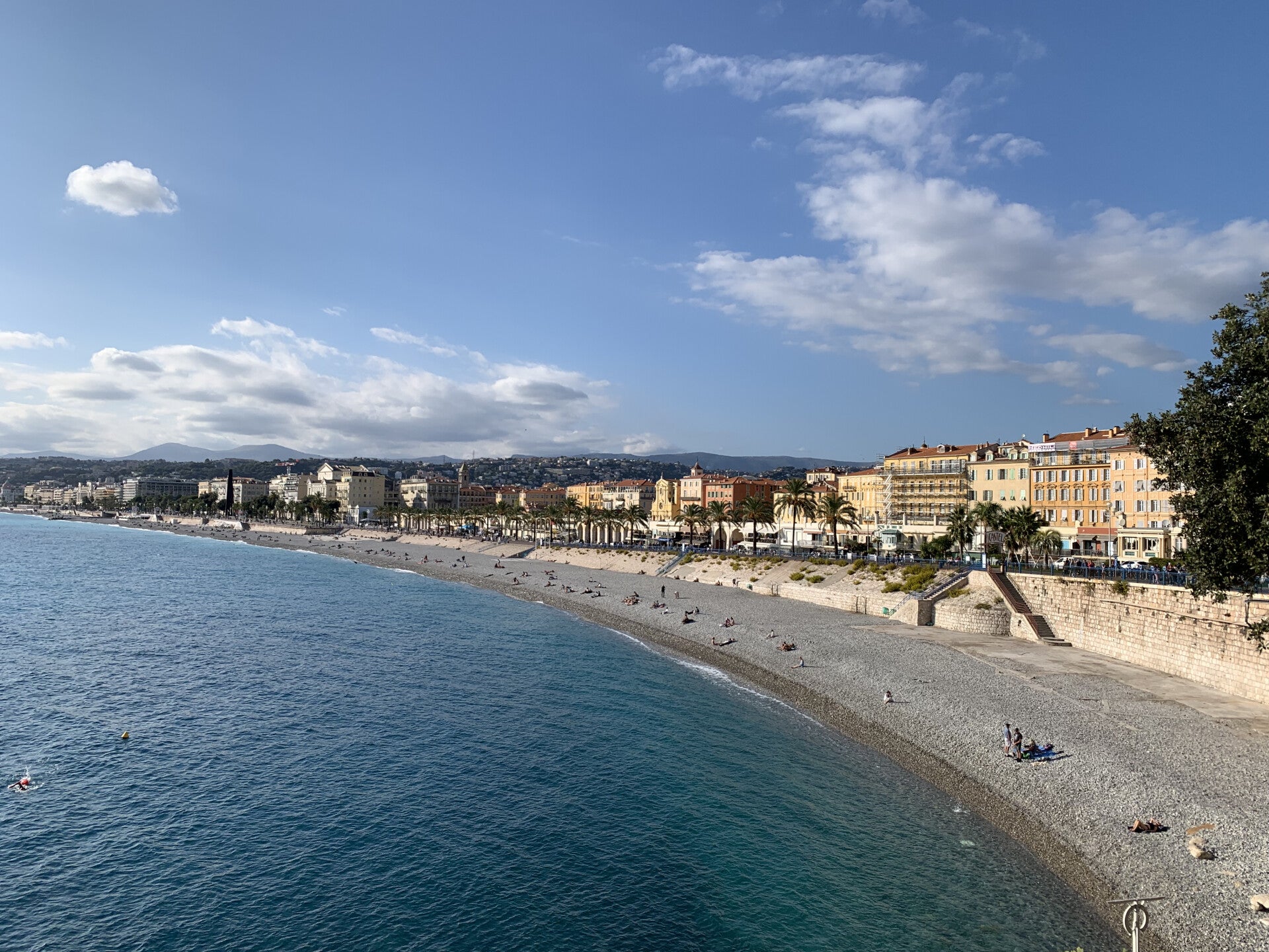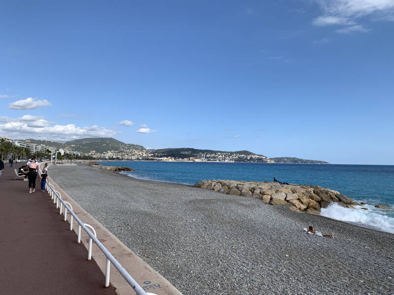 We hadden ons verheugd op Nice, vooral op een indrukwekkende Promenade des Anglais, maar dat valt een beetje tegen. Er is heel veel verkeer en weinig geflanneer. Het voetgangersgebied en het strand zijn bijna verlaten.