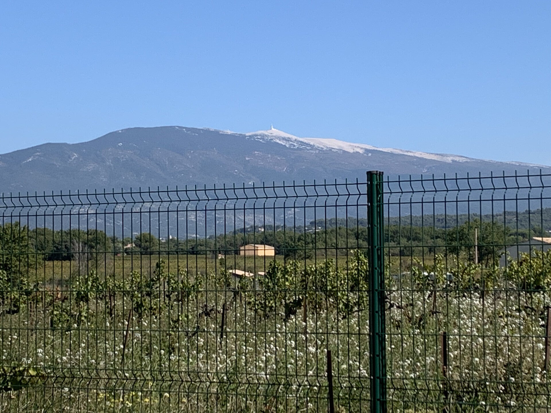 Aan het einde van de Gorges du Verdon rijden we achtereenvolgens naar Moustiers-Sainte-Marie, Manosque en Apt. Iets achter Apt vindt TomTom het "wel handig" om ons over de Col-de-Murs te sturen. Dat is een smalle weg, waar het goed fietsen is (de Tour de France was hier onlangs nog), maar voor een buscamper is het eigenijk geen prettige route. Je hebt met al die bochten nauwelijks zicht op eventuele tegenliggers, en als er dan een tegenligger is, dan is het passen en meten om elkaar zonder schade te passeren. De weg is bovendien rijkelijk bestrooid met "gravillons", oftewel steenslag. De steentjes hameren voortdurend luid tegen de binnenkant van de spatborden. We zijn dan ook opgelucht als we bij Mazan voor de poort van de camping staan. De plaatsen zijn er riant en het uitzicht op de Mont Ventoux is fraai. En, niet onbelangrijk, wifi is er bijzonder goed.