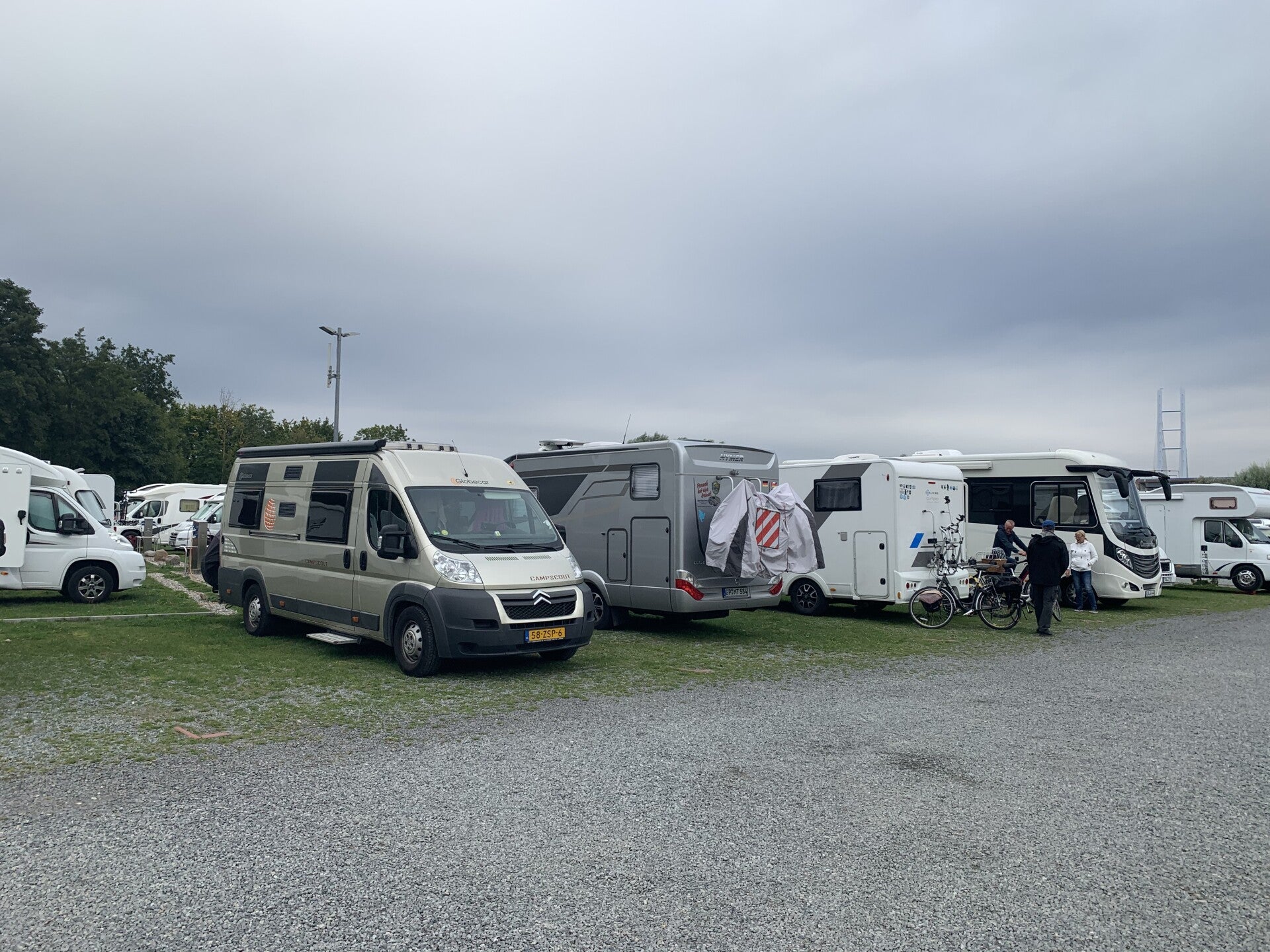 We vertrekken vanochtend (voor onze doen) vrij vroeg. We verlaten om 09:30 de camping in Ückeritz. We willen uiterlijk om 11:00 bij de camperplaats van Stralsund zijn, omdat er dan nog een redelijke kans is op een vrije plaats. De rit duurde iets langer (flinke file in Wolgast, langzaam rijdende vrachtwagens), maar als we om 11.30 bij de camperplaats aankomen, zijn er nog een paar vrije plaatsen. Het lijkt alsof de drukte een beetje is geluwd.