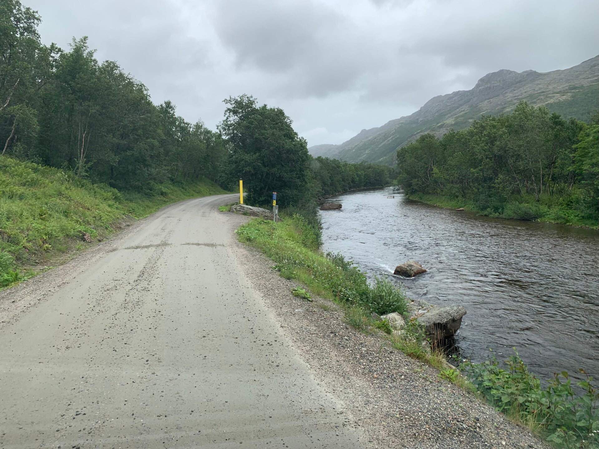 De laatste 10 km van de onverharde weg loopt langs een riviertje dat hier de grens vormt tussen Noorwegen en Rusland. Je wordt in meerdere talen gewaarschuwd om toch vooral niet naar de overkant te gaan. Van militaire activiteit (verhoogde waakzaamheid o.i.d.) merken we echter niets. Wél zie je af en toe uitkijktorens aan de Russische kant. Het is echter niet duidelijk, of deze bemand zijn. We zien ook nog een Noorse militaire loods, met een verzameling legergroene quads voor de deur, maar ook daar is geen levende ziel te bekennen.