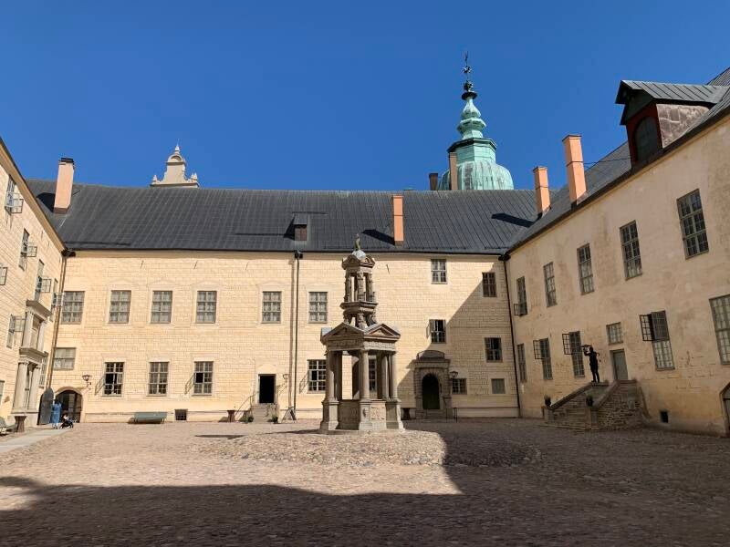 Kalmar heeft een gezellig, hier en daar historisch, centrum. Dé trekpleister is het slot van Kalmar. Dat ligt bijzonder fraai en indrukwekkend op een eilandje, vrij ver buiten het centrum. De wijk rondom het slot was vroeger het centrum van Kalmar, tot om onduidelijke redenen rond 1600 werd besloten om het centrum te verplaatsen naar de huidige positie. Het gebied rond het slot werd een buitenwijk met kleine houten huisjes. Om eerlijk te zijn, dat vinden wij het prettigste gedeelte van de stad.
