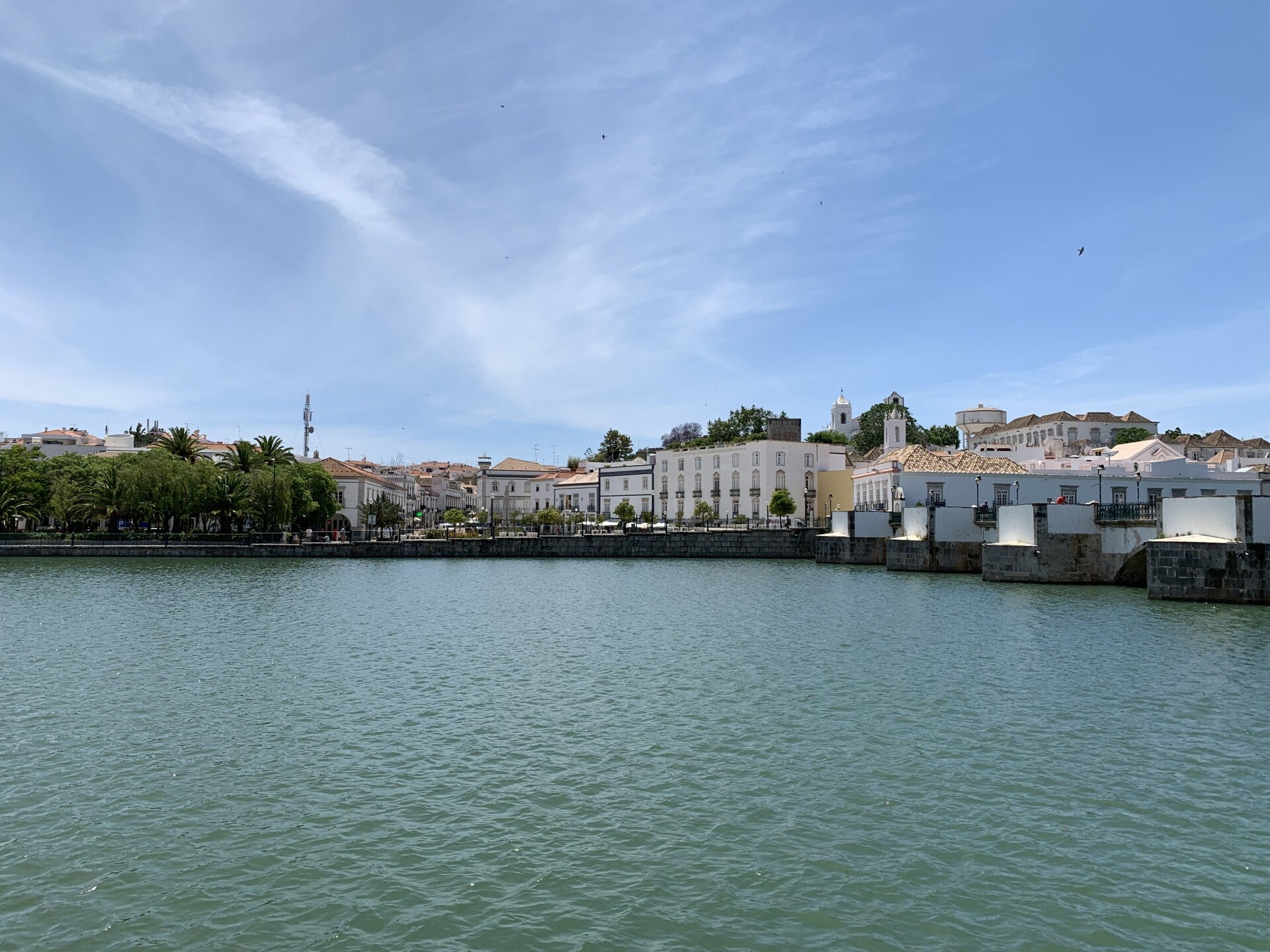 Tavira aan de Rio Gilão (inzoomen voor het hoofdplein)