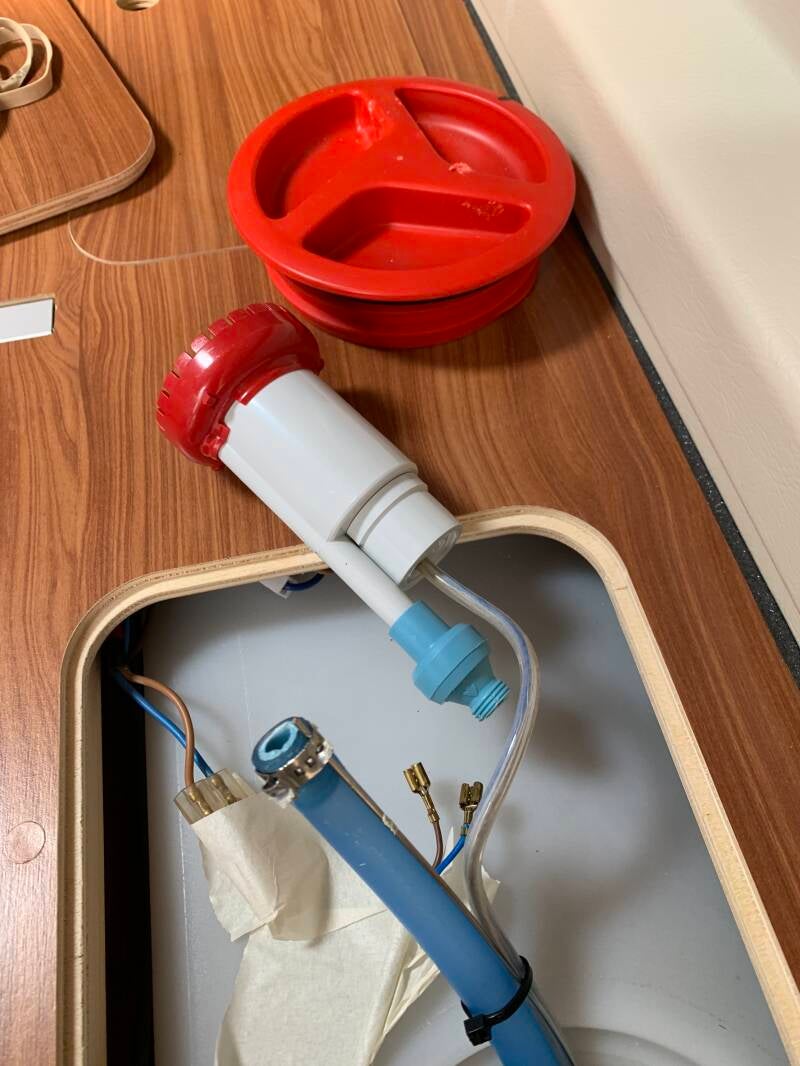 Voor zaken als drinken, koffie en thee zetten en tanden poetsen, gebruikten we altijd al vers water uit een waterzak en een paar plastic flessen (we vinden het water uit de watertank namelijk voor consumptie onbetrouwbaar). We gebruiken het water uit de watertank eigenlijk alleen maar voor het doorspoelen van het toilet en voor het wassen van de handen. Welnu, daarvoor gebruiken we voortaan een extra fles water (er is net een plastic ranjafles beschikbaar gekomen). Mocht de voorraad water in flessen en waterzak tussentijds opraken, dan hebben we altijd nog 10 liter vers water in een jerrycan in het laadruim. Daarmee kunnen we prima uit de voeten.