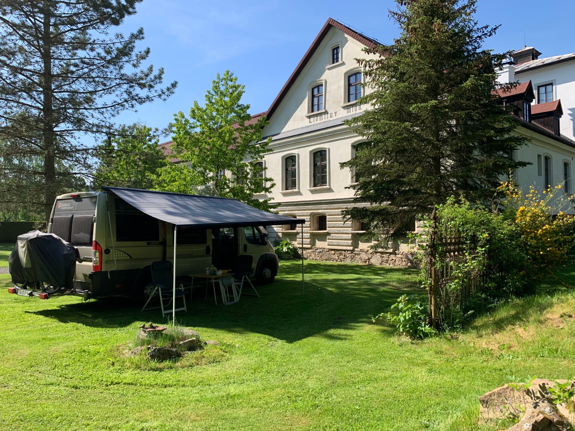 Na een uurtje rijden we verder naar het plaatselijke kasteel. Dat is met de buzz echter niet bereikbaar, en nog een keer een dubbele P op het plein zit er niet in. We zijn daarom maar doorgereden naar de camping in Sádek, zo’n 25 km zuidelijk van Litomyšl.