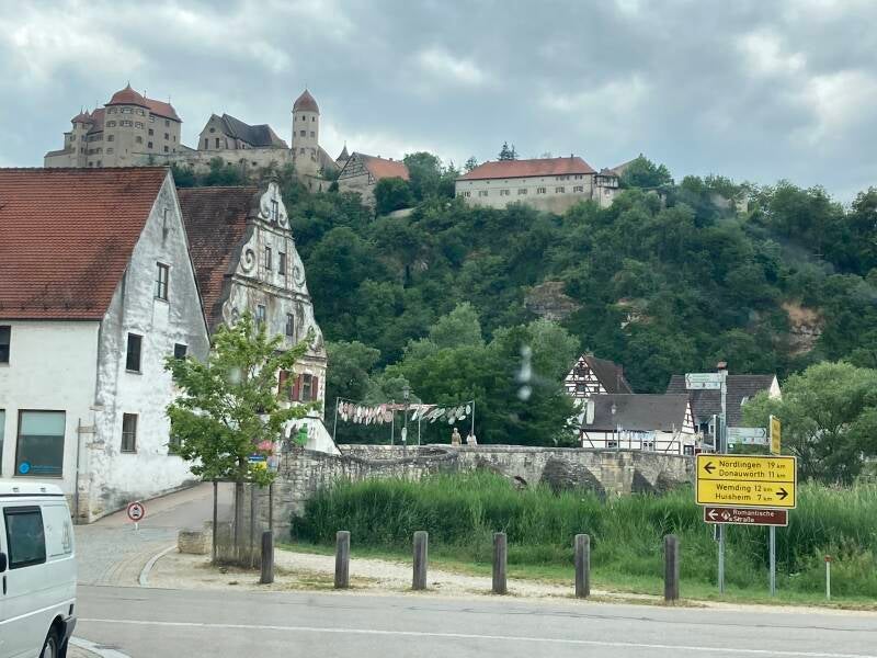 In 2013 hebben we Donauwörth niet bezocht, en reden we Harburg voorbij zonder het op te merken. Deze twee plaatsen hebben we dit keer wél bezocht, dat wil zeggen, we zijn met de buzz dwars door Donauwörth gereden, maar vonden er geen parkeergelegenheid, en we hebben geluncht aan de voet van de burcht van Harburg.
