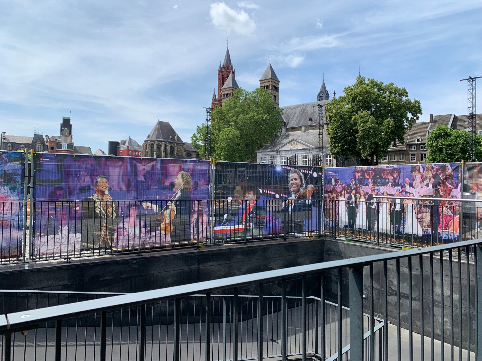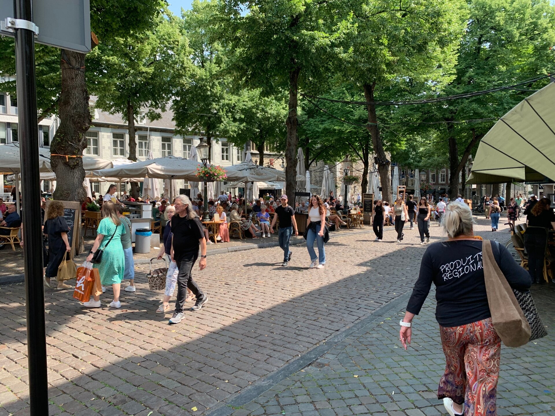 Vandaag is Maastricht overvol. Op de Markt is het markt. Het Vrijthof is geconfiskeerd door de fa. Rieu, want over een week begint de zoveelste concertreeks (verschillende terrassen op het Vrijthof proberen nog, vrije plaatsen voor het concert te slijten).