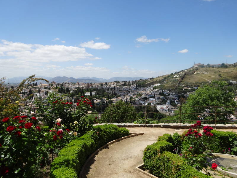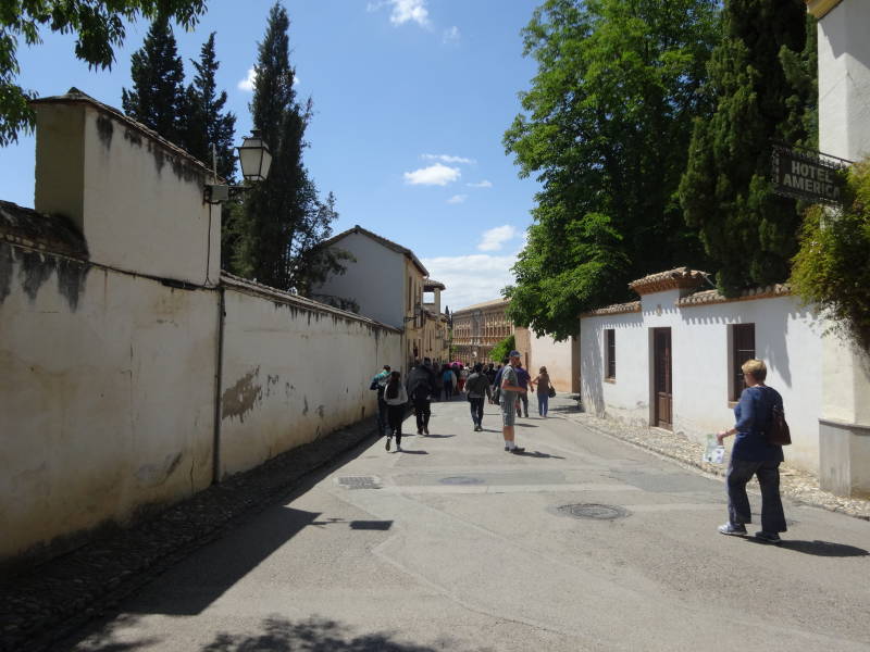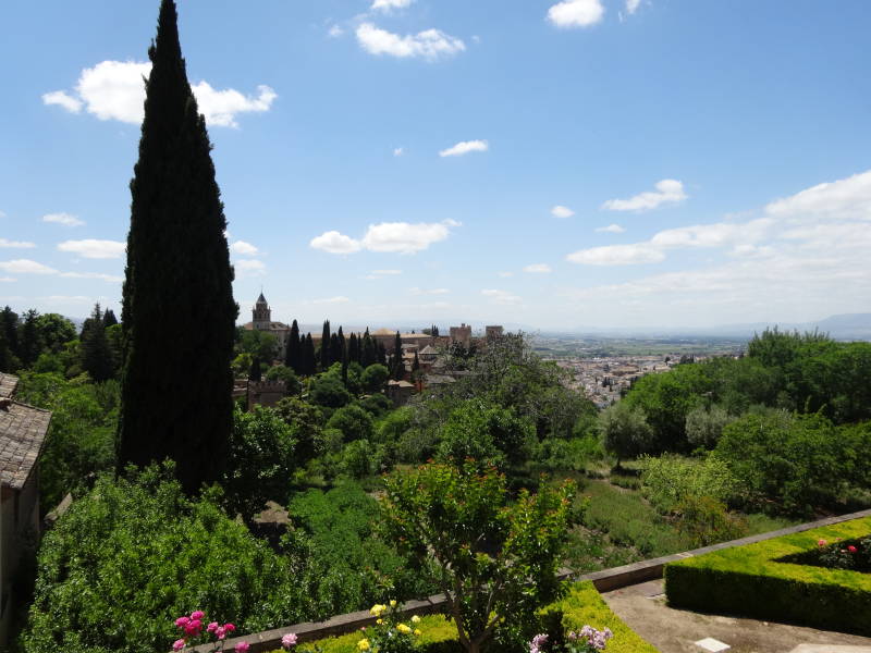 Het Alhambra kan alleen worden bezocht, als er toegangsbewijzen zijn gereserveerd. Aan een toegangsbewijs is het tijdstip gekoppeld, waarop de Nasrid-paleizen kunnen worden bezocht. Wij zijn pas laat in de middag aan de beurt. Daarom beginnen we bij het Generalife.