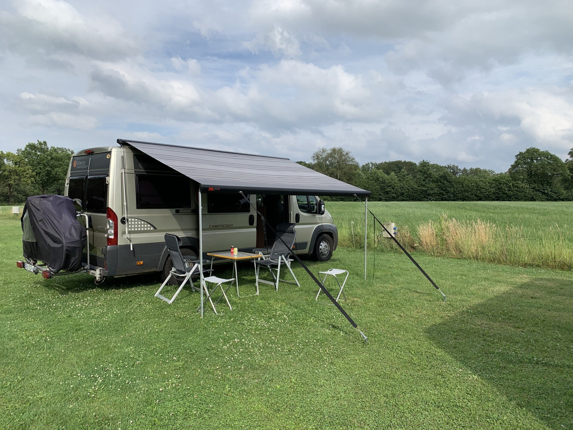 Na de cappuccino bij 't Witte Hoes rijden we door naar Winterswijk. Van kennissen krijgen we onderweg via een groepsapp het advies om aldaar naar Natuurkampeerterrein Lutje Kössink te gaan. We nemen dat advies over, en het moet gezegd; wat een schitterende plek om te staan.