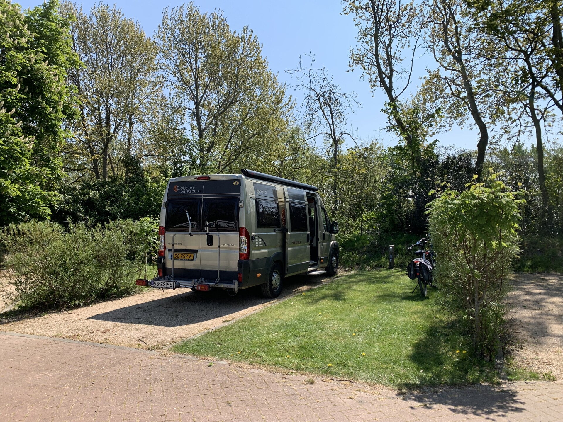 Na 6 overnachtingen op de boerderijcamping van Mieke en André gaan we weer verder. Het is maar een betrekkelijk kort stukje rijden naar Renesse, waar we een plaatsje vinden op de camperplaats van vakantiepark Schouwen. Later in de middag fietsen we naar het Westerstrand van Renesse.