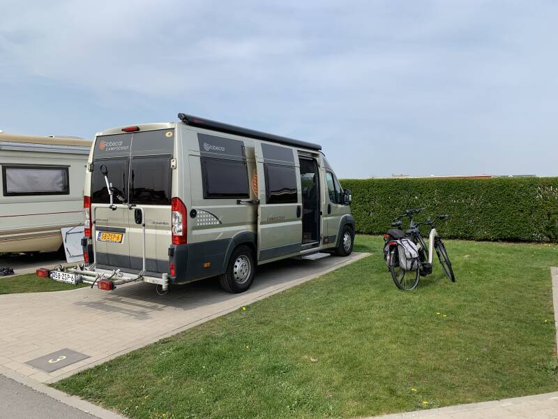 Het is maar 42 km naar Middelkerke, maar TomTom had weer zo zijn eigen idee van een logische route: dwars door Nieuwpoort en dwars door Westende. De camperplaats in Middelkerke, Zeester, is “volzet”, maar een stel sympathieke Belgen vertelt ons, dat ze op het punt staan om te vertrekken (met een uurke). We parkeren de bus en wachten op hun vertrek.