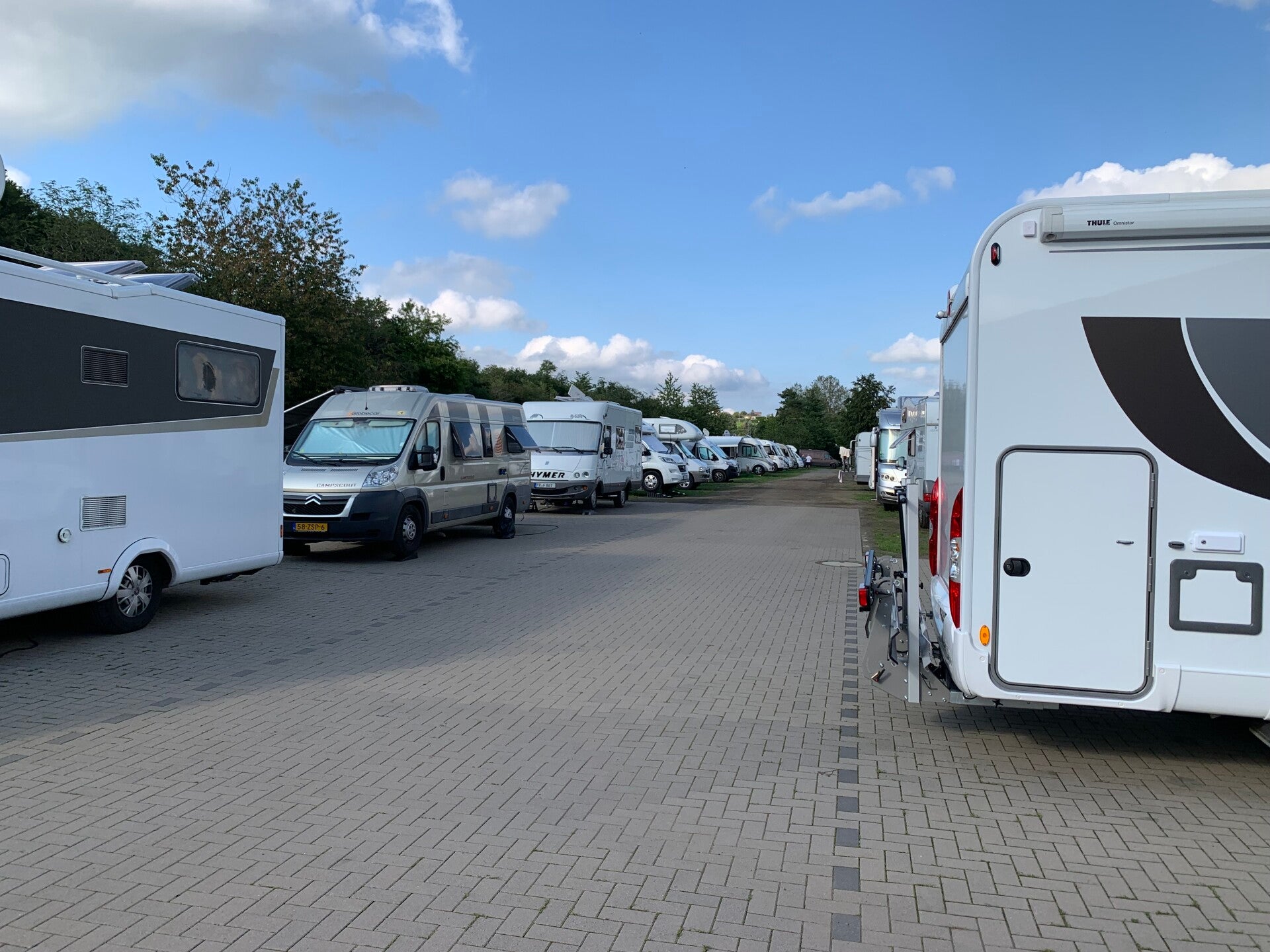We rijden via Luik en Verviers naar de E42, richting Malmedy en Sankt Vith. Bij Prüm slaan we af en gaan we via de “410” naar Gerolstein en Pelm. Daar nemen we de L27 en de L28 naar Daun. Via Mehren rijden we naar Schalkenmehren. Vlak voor dat plaatsje is de camperplaats. Als we daar aankomen, zijn er nog 6 vrije plaatsen, waaronder een van de verharde plaatsen bij de ingang.
